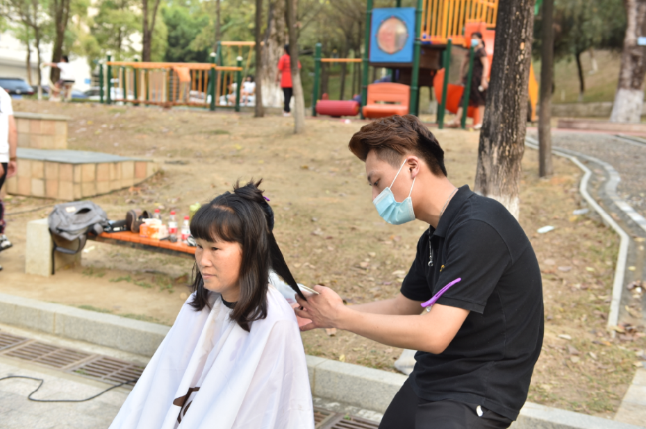 图:党员房杏瑕积极组织美发师志愿者开展义剪服务