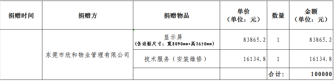 东莞市社会福利中心接受社会捐赠配置资产登记表