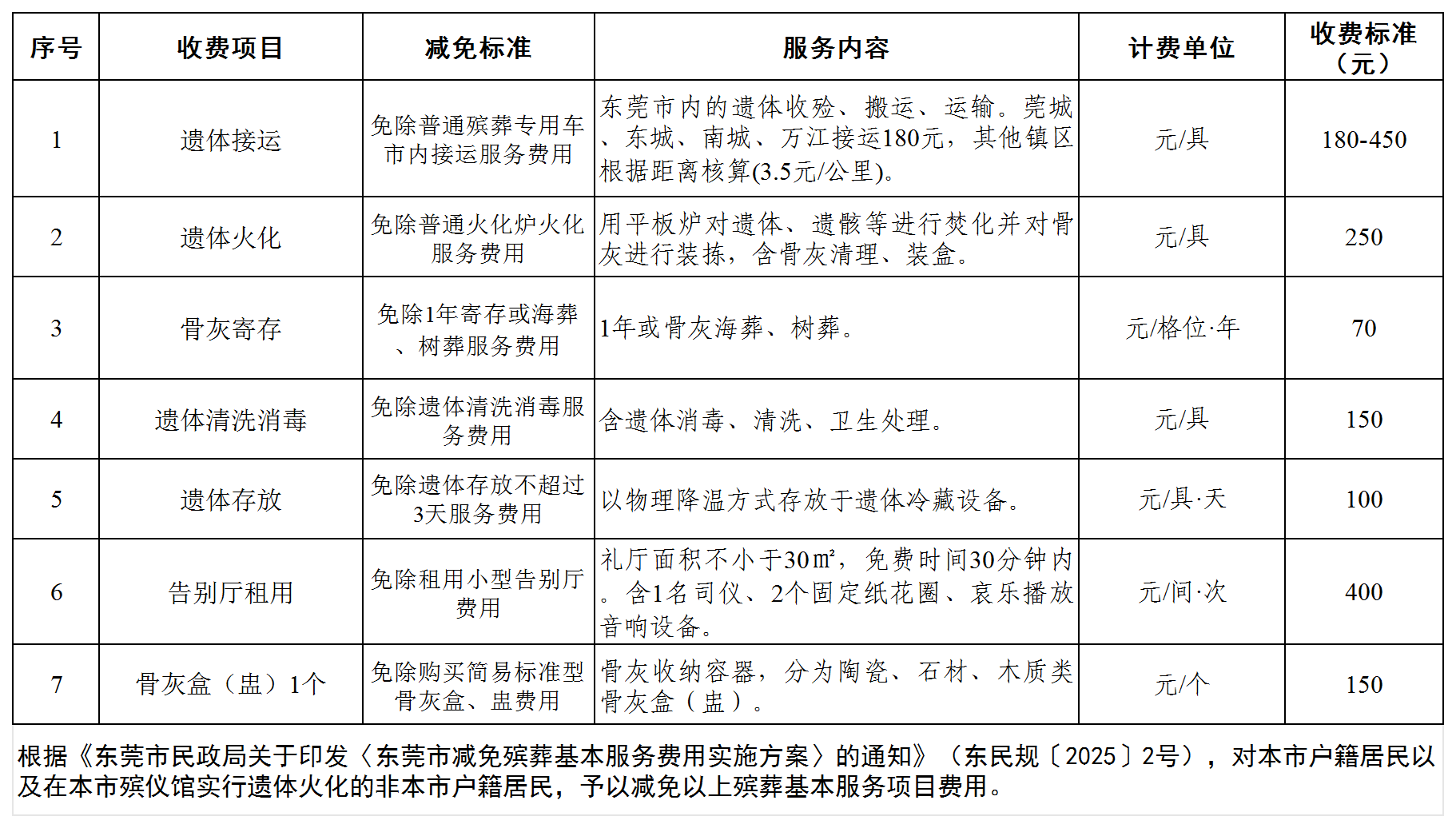 东莞市殡仪馆殡葬基本服务项目清单
